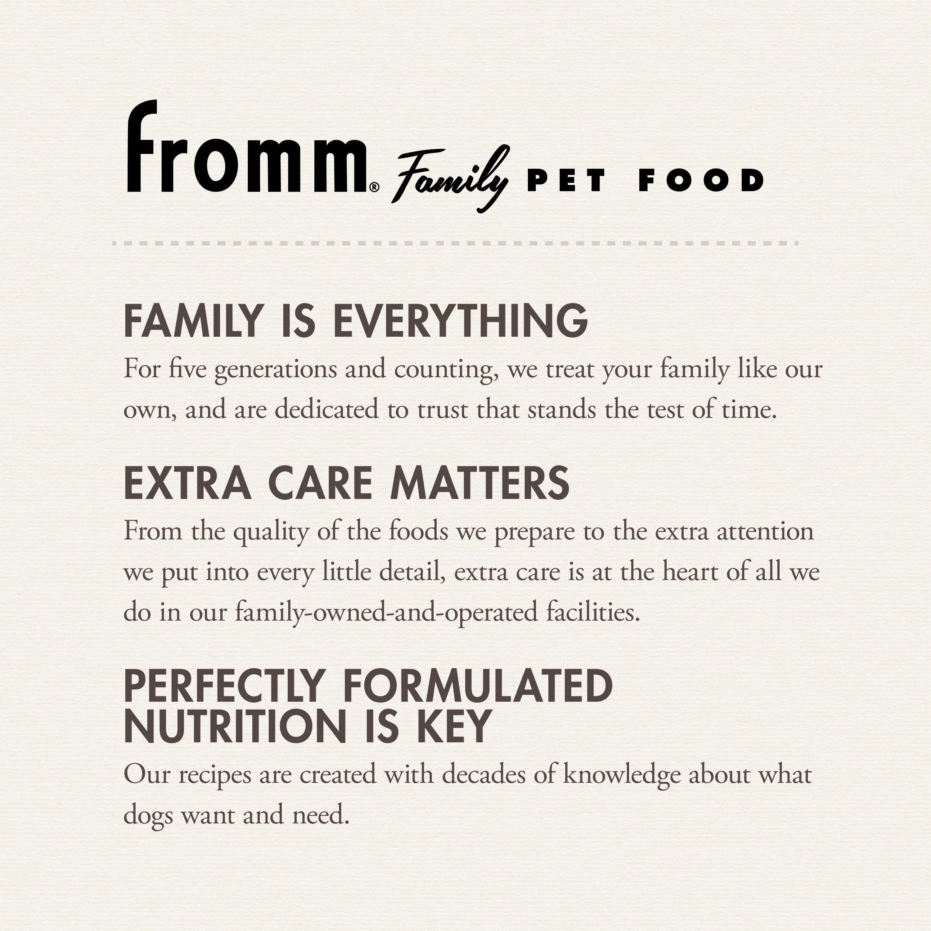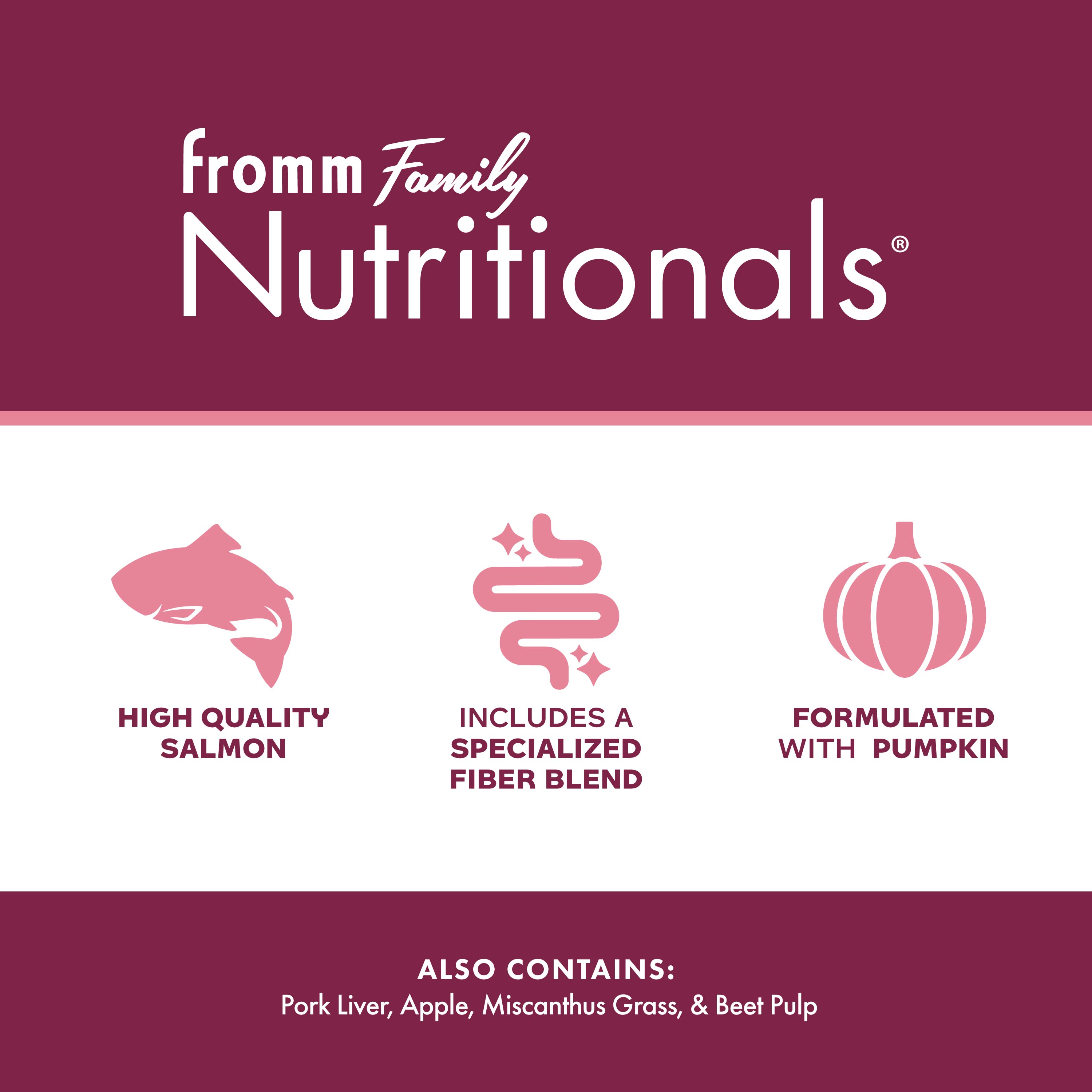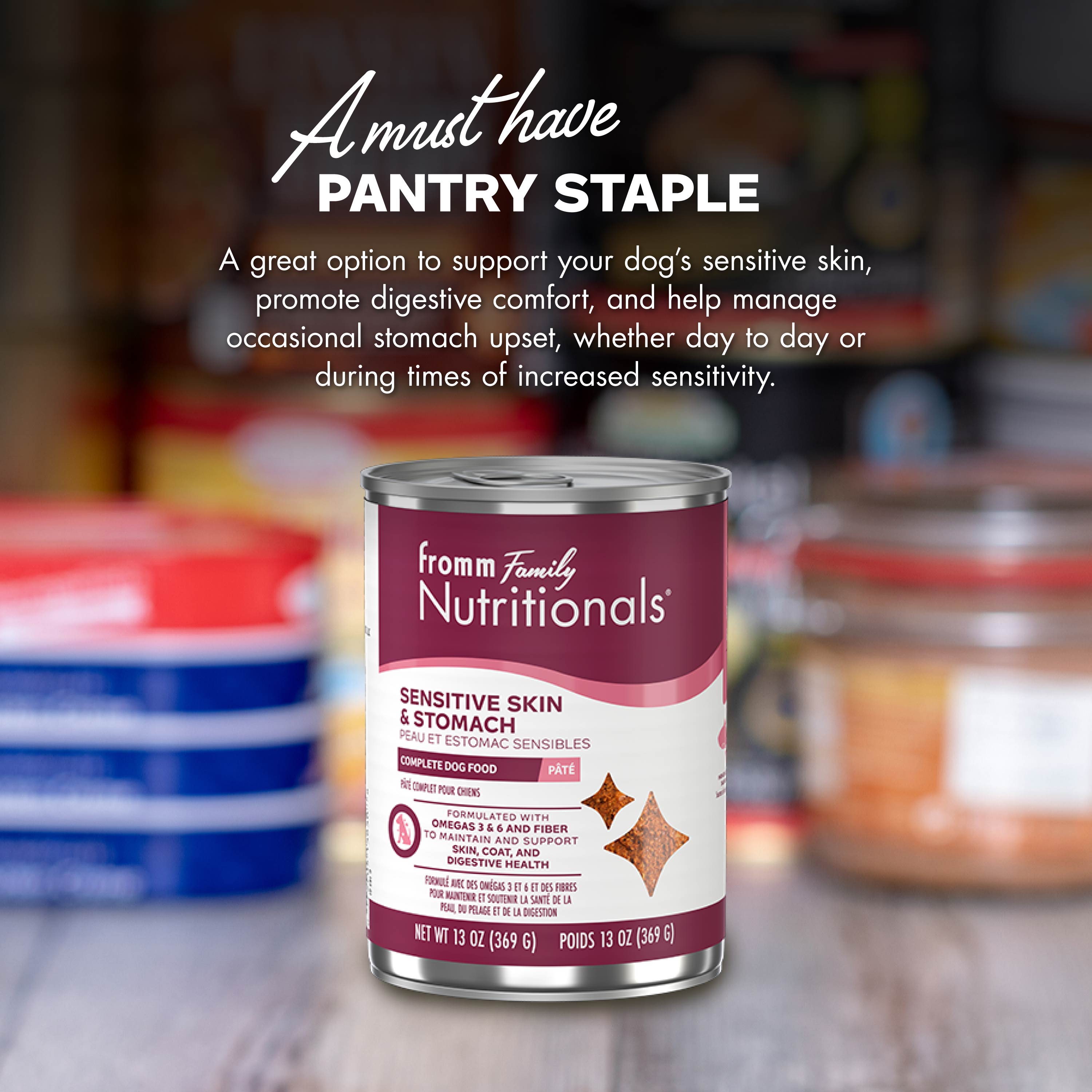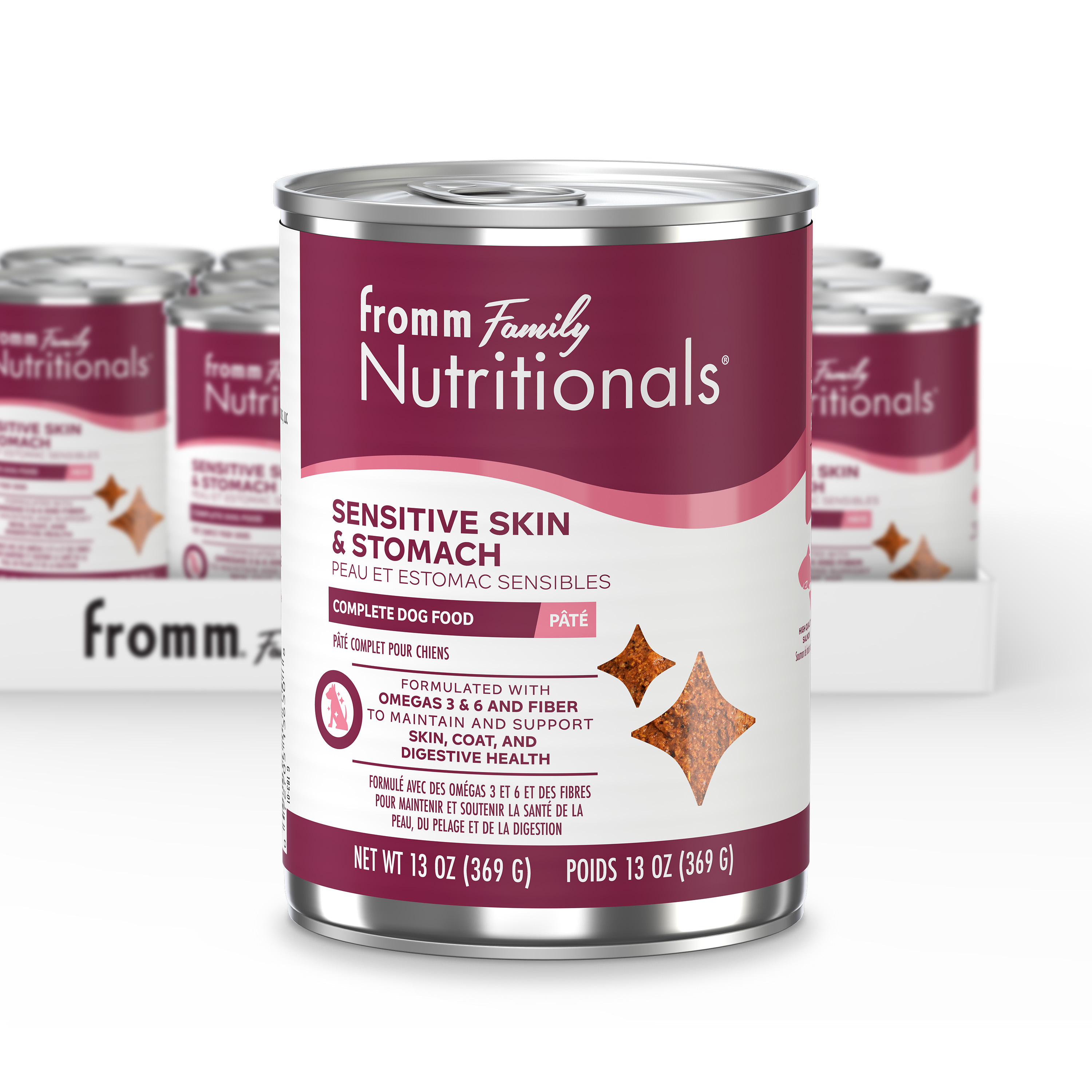 Fromm Family Nutritionals® Sensitive Skin and Stomach Complete Dog Food Pâté is formulated to meet the nutritional levels established by the AAFCO Dog Food Nutrient Profiles for All Life Stages, including growth of large size dogs (70 lb. or more as an adult).