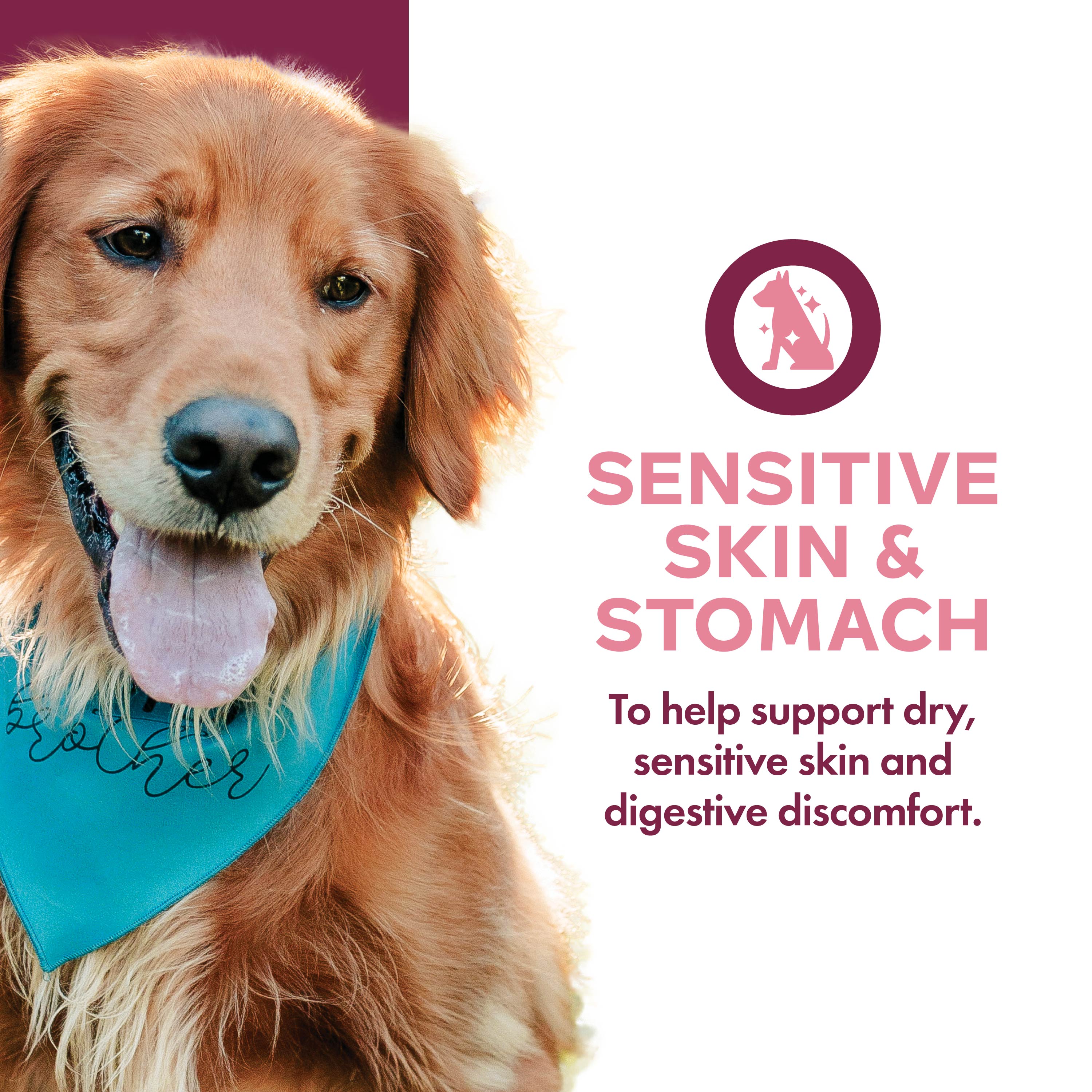 Sensitive skin and stomach-supporting all life stage canned dog food formulated without chicken, with hydrolyzed proteins, omega‑3 and omega‑6 fatty acids, and dietary fiber to help maintain and support skin, coat, and digestive health.